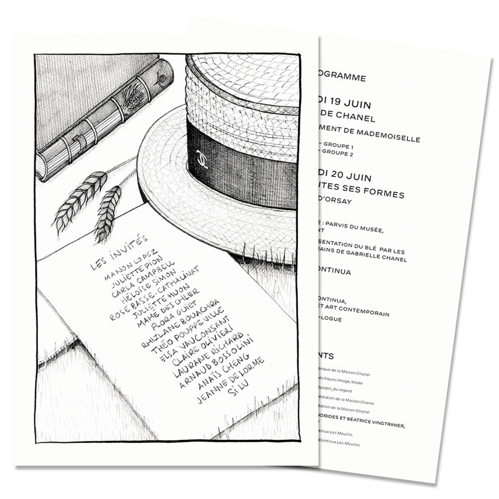 Réalisation d’un cartel illustré pour un événement de la maison Chanel : mission d’illustrations et de mise en page.