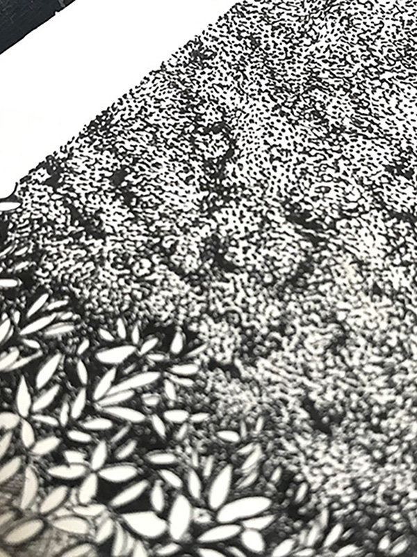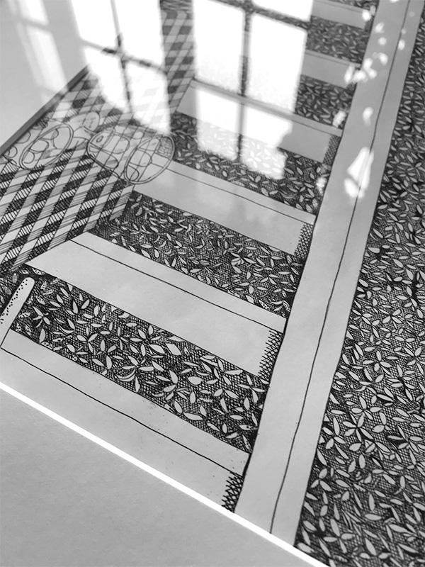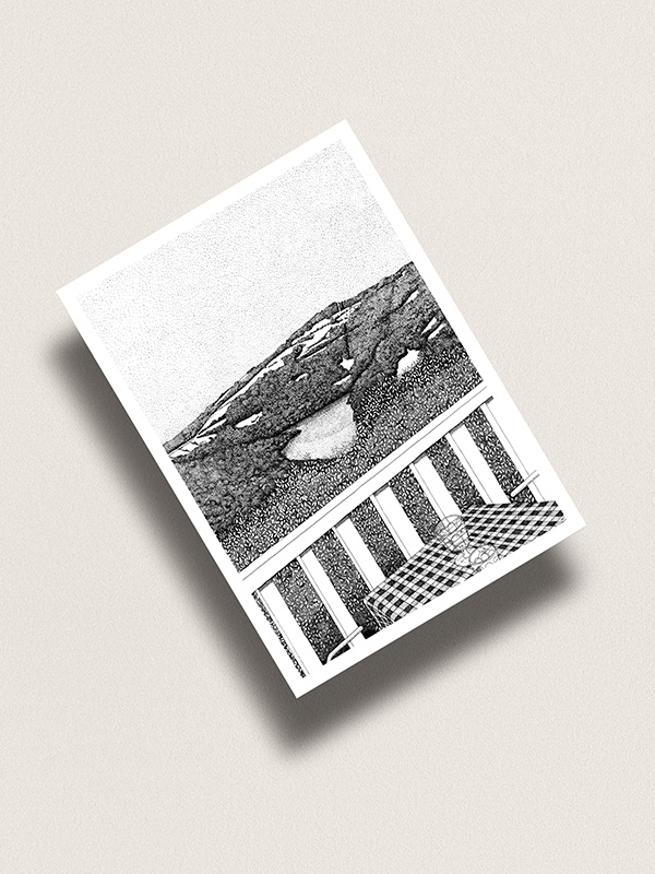 Réalisation d’une illustration originale depuis l’Auberge vers le lac de Castelnau, Aveyron, réalisation de la maquette et édition de cartes illustrées.